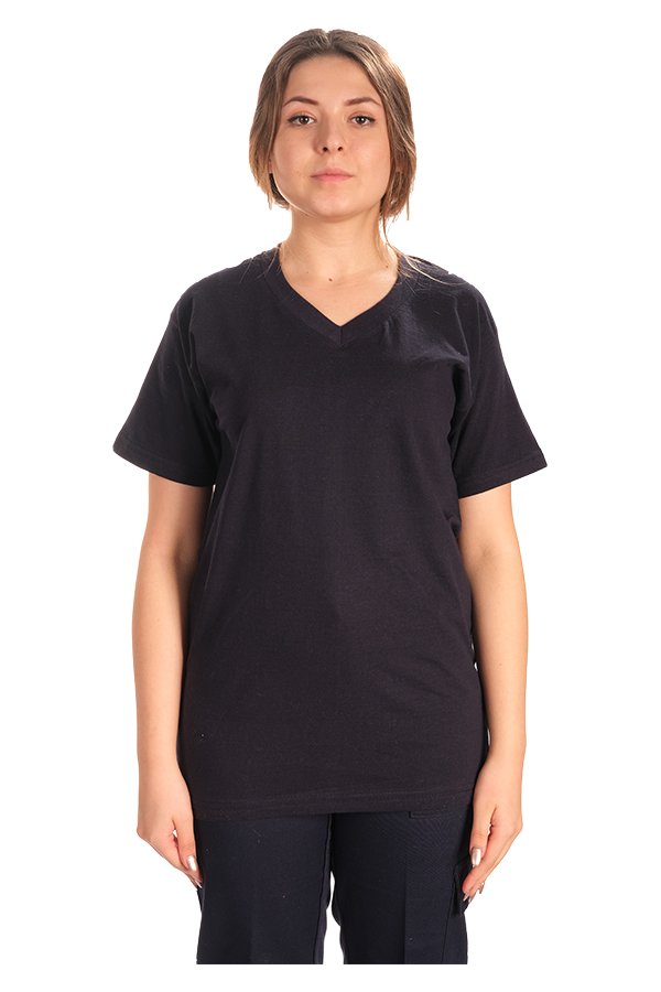 V yaka Kısa Kol Siyah